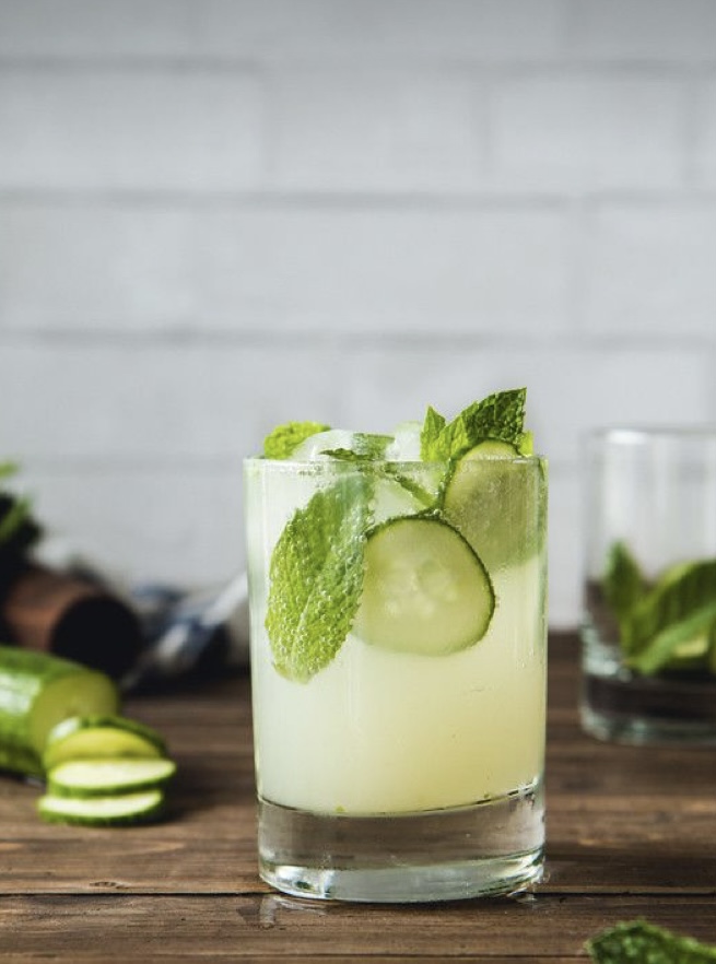 1. In a glass, muddle the mint leaves, cucumber slices, and sugar together until the mint leaves are bruised and the cucumber releases its juices.